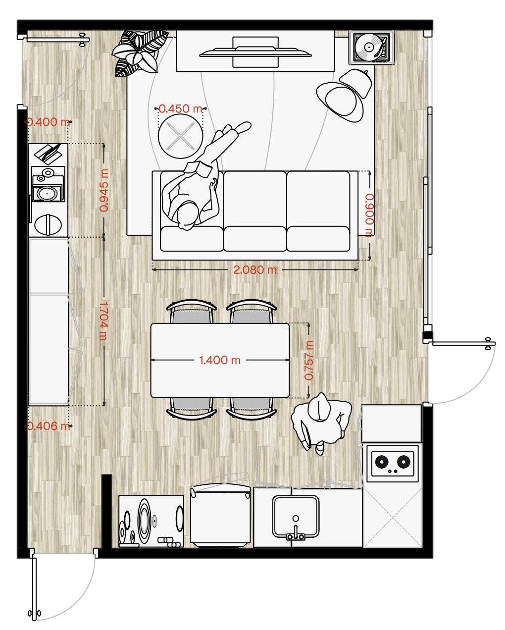 • One or more 2D floor plans with furniture placements and measurements to be used as. reference when shopping.